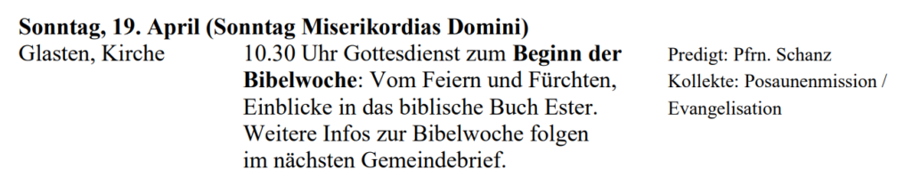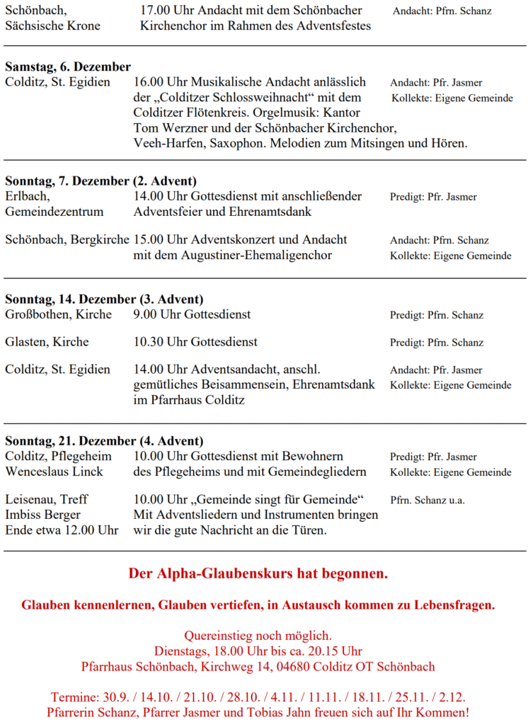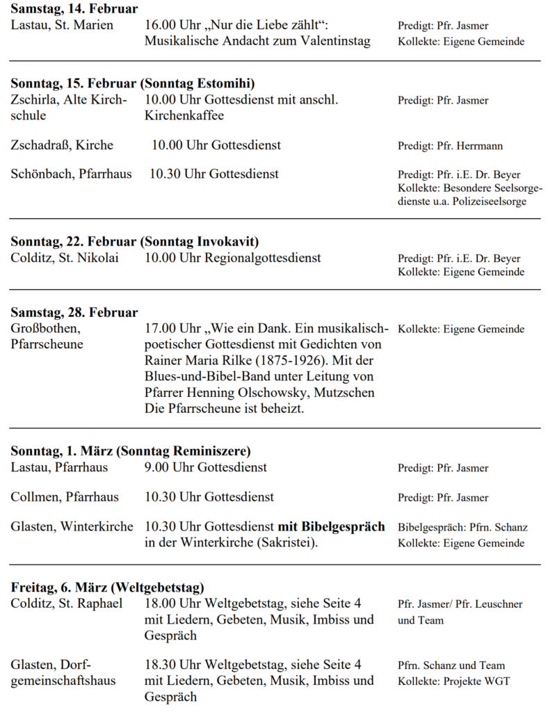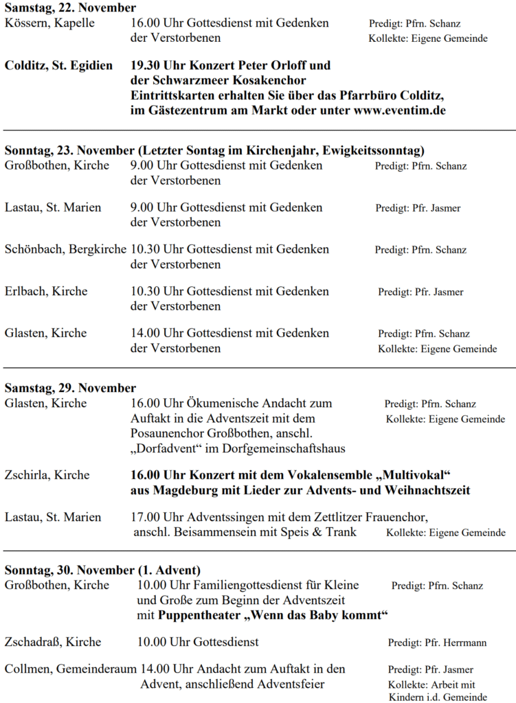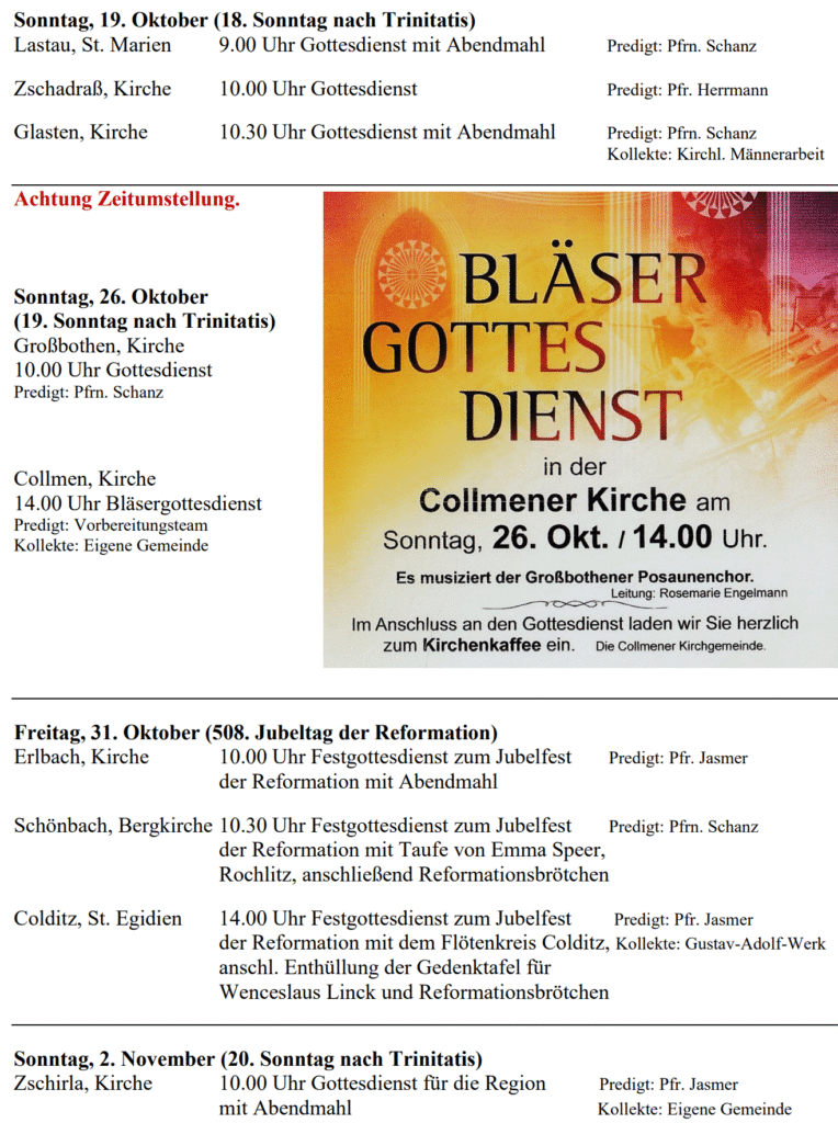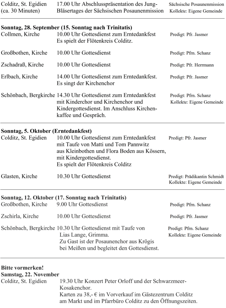 Kirchgemeinde Großbothen, Schönbach, Glasten